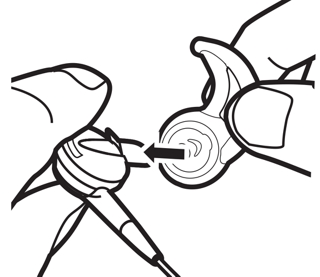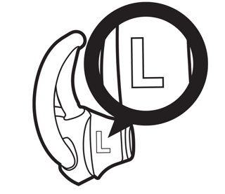 Bitte beachten Sie: Jeder Ohreinsatz ist entweder mit einem L oder einem R markiert, um anzugeben, für welches Ohrstück er ist. Bringen Sie den linken StayHear® Ohreinsatz am linken Ohrstück und den rechten StayHear Ohreinsatz am rechten Ohrstück an.